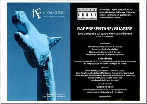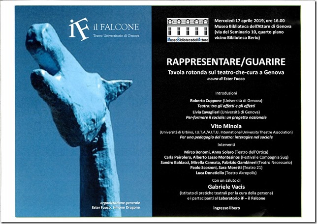 Mercoledì, 17 aprile 2019, alle ore 16,00 presso il Museo Biblioteca dell’Attore di Genova (via del Seminario, 10, quarto piano), tavola rotonda su Teatro che cura, a cura di Ester Fuoco.